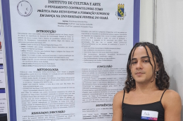 Houve também trabalho que representou o protagonismo estudantil como ferramenta de transformação na comunidade acadêmica. A estudante de Dança – Bacharelado e bolsista do Programa de Acolhimento e Incentivo à Permanência (PAIP), Átila Bruna, com seu trabalho “O pensamento contracolonial como prática para reinventar a formação superior em Dança na Universidade Federal do Ceará”, apresentou a importância da movimentação estudantil. A ODS escolhida foi a 10. Redução das Desigualdades. “A movimentação estudantil que acontece dentro da Universidade influencia no acolhimento e incentivo à permanência.”, ressaltou.
